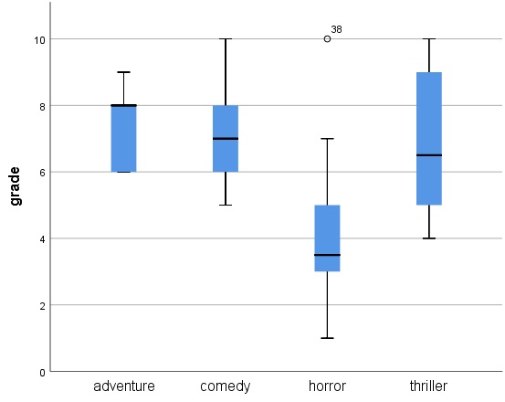 Box-plots are a bit more technical, and are not understood quickly by those who never seen them. The show the so-called quartiles (minimum, 1st quartile, median, 3rd quartile, and maximum). They give more insight on how the data was distributed.