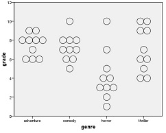 We could also create a dot plot of each variable. This is similar as the split histogram, but if there are only a few data points or only a few different values this might be preferred.