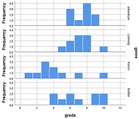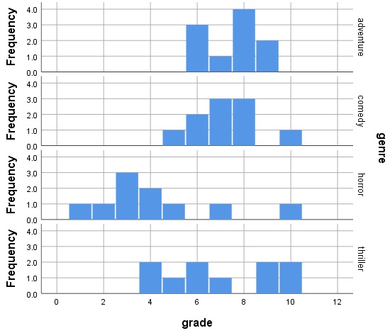 As with the nominal vs. scale visualisation, we could create a histogram for each variable, and simply add them underneath each other. This will already give more insight how the data was distributed for each variable than the Bar Chart of Means.